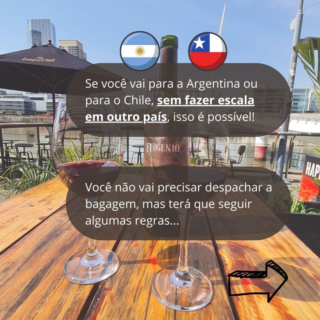 Mas lembre-se que o vôo tem que ser direto entre Brasil e Argentina ou Brasil e Chile. Se tiver escala não é permitido, ok?