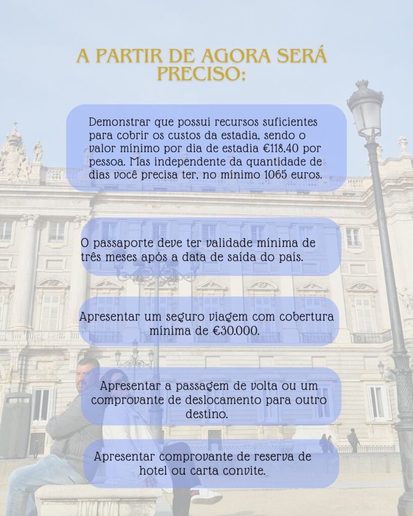 Novas Regras Para Entrar na Espanha https://www.vemviajaramor.com.br/2025/08/14/novas-regras-para-entrar-na-espanha/ Thu, 14 Aug 2025 19:00:56 +0000 https://www.vemviajaramor.com.br/?p=516 Recentemente a Espanha ampliou as regras para turistas ingressarem no país, além das que já existiam com relação aos países integrantes do espaço Schengen. Portanto, fique atento, caso já tenha viagem marcada para lá. Se você vai para a Espanha e quer saber nossas dicas, não deixe de visitar nossas postagens por aqui e também […]