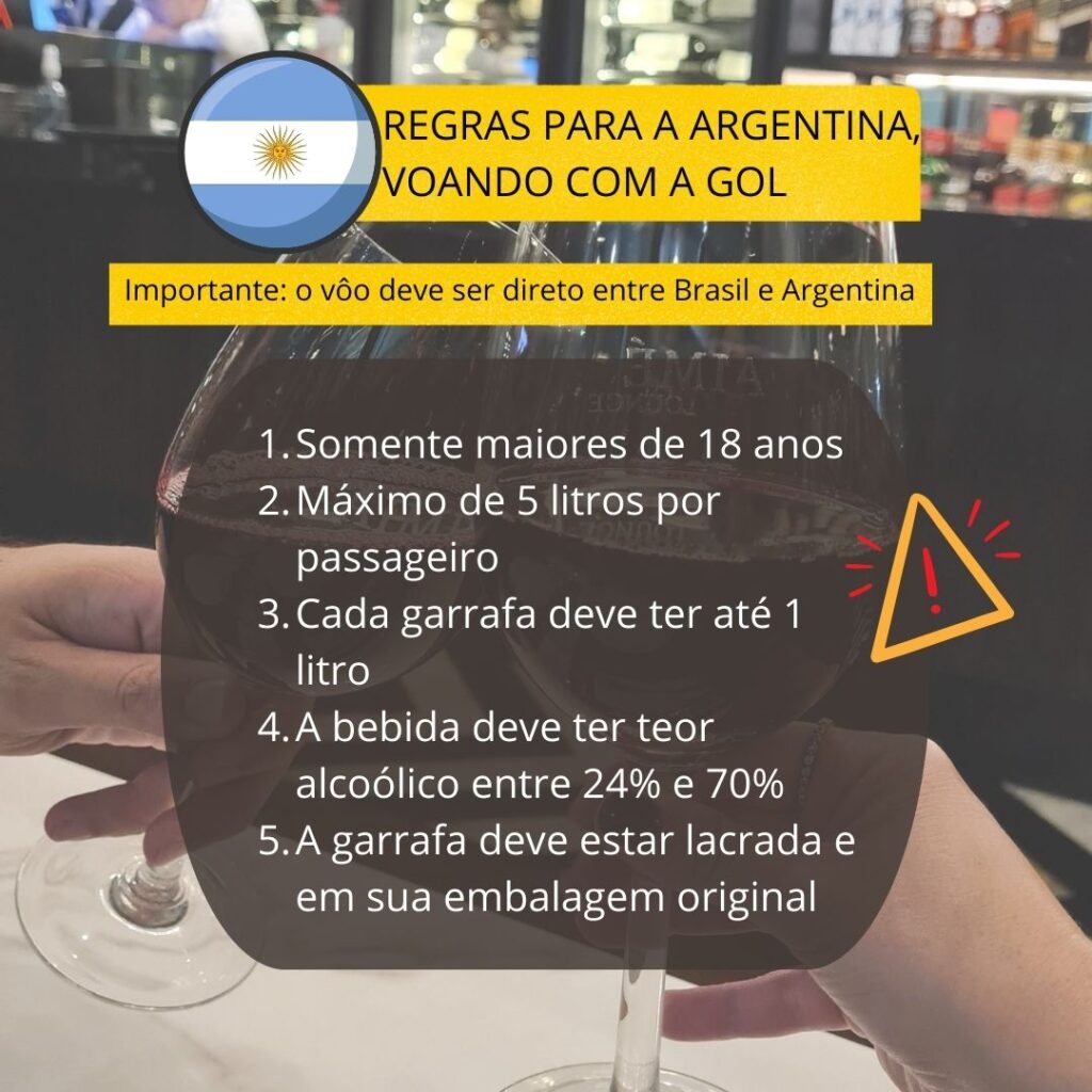 Se você vai com outra companhia aérea, você também pode trazer bebidas alcoólicas na bagagem de mão, mas antes verifique no site da empresa as regras específicas!